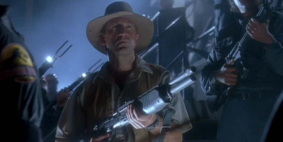 La scène finale où nos aventuriers montent dans l’hélicoptère pour quitter l’île révèle de tendres sentiments humains. Comme une famille fatiguée après un long week-end passé dans un parc d’attractions, les personnages s’endorment et sont heureux de repartir chez eux. Le sourire envahit leurs visages, leurs yeux brillent, ils sont accomplis de tout ce qu’ils ont vécu. Toute cette aventure n’a durée que deux jours, mais c’est comme si le temps s’était arrêté. Les survivants ont lutté jusqu’au bout, leurs actions furent poussées à la perfection. Leur âme s’est réalisée et épanouie. Nous sommes conquis par la grâce du récit. Spielberg nous a fait voyager ! Jurassic Park nous permet de sortir spirituellement de soi et de vivre l’aventure au premier degré.